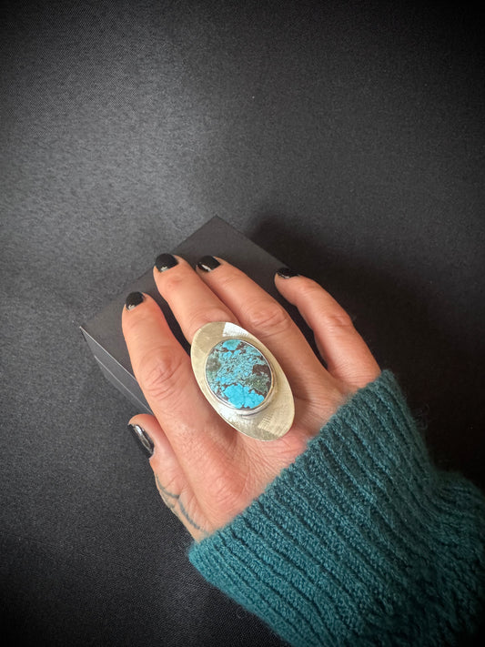 Mexican Sea Pottery Sterling Silver Ring - Size S