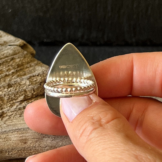 Oval Chrysocolla Oxidised Sterling Silver Ring - Size O