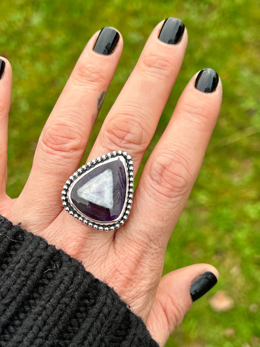 Trapiche Amethyst Sterling Silver Beaded Ring - Size P