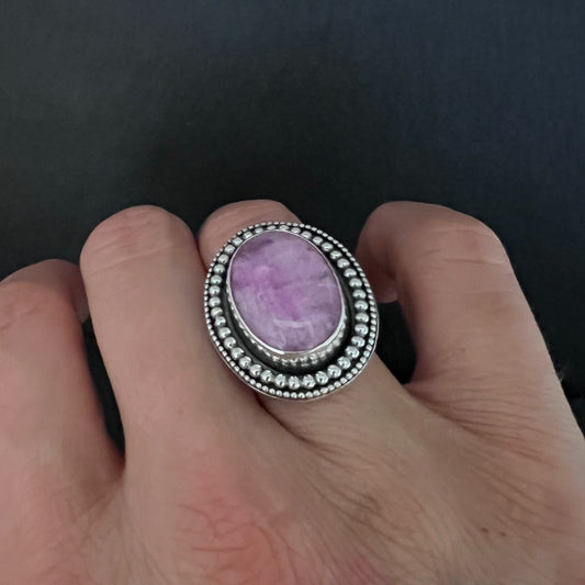 Charoite Sterling Silver Beaded Ring - Size Q½