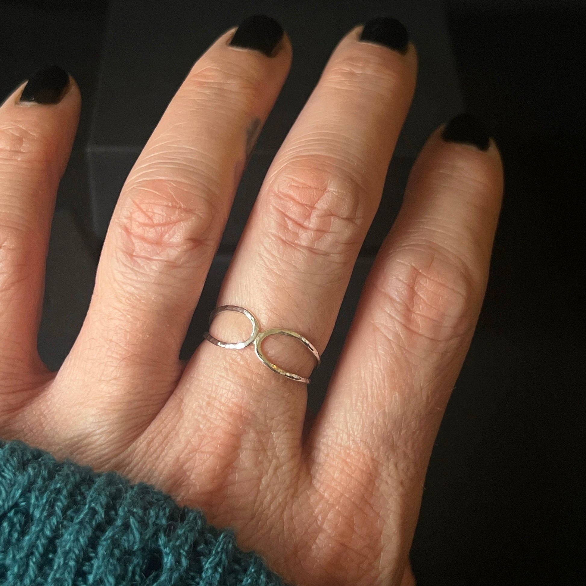 Skinny Hammered Sterling Silver Loop Ring - Size P 1/2