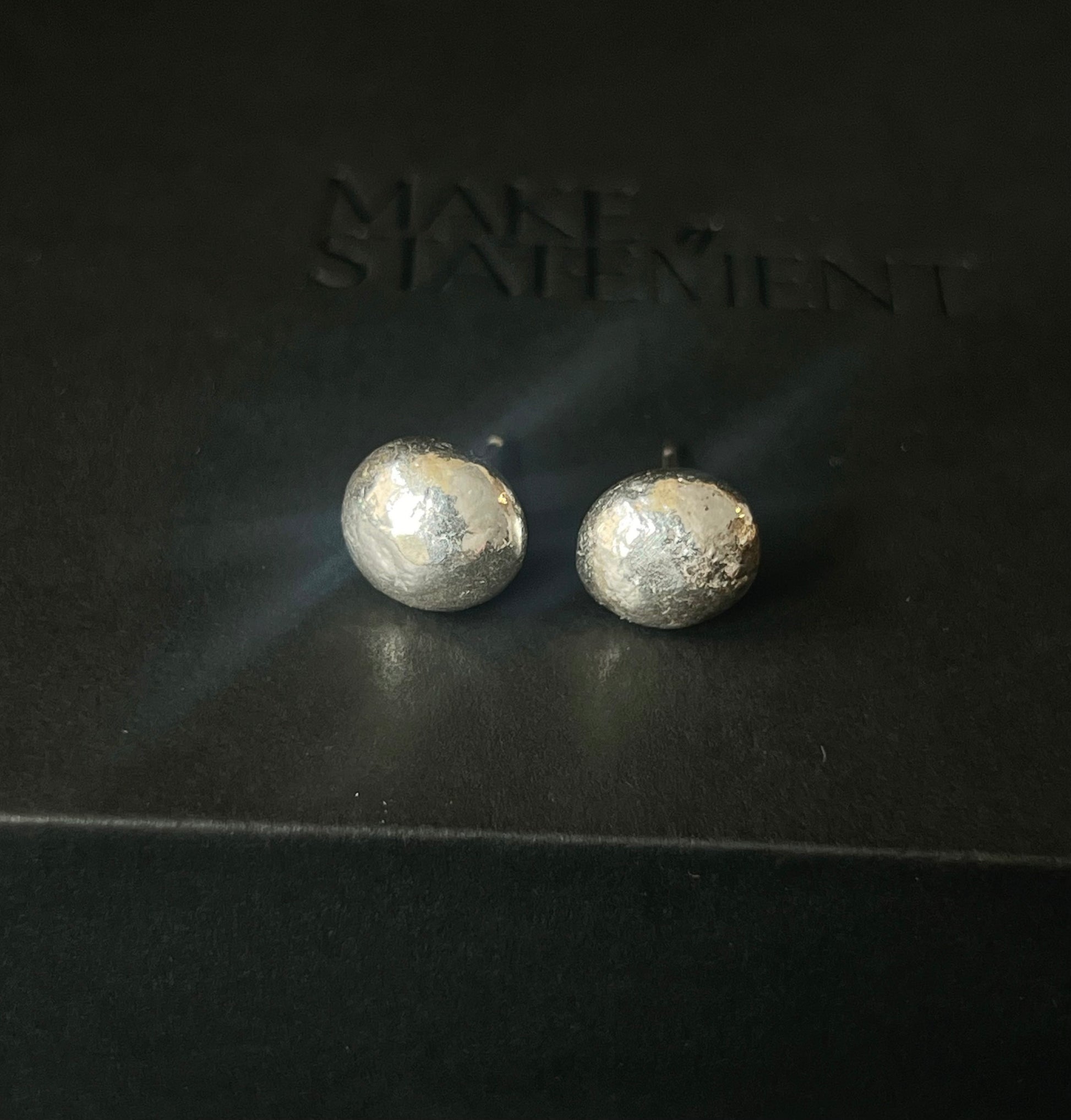 These handmade pebble earrings are created by melting down sterling silver until it forms an organic ball.