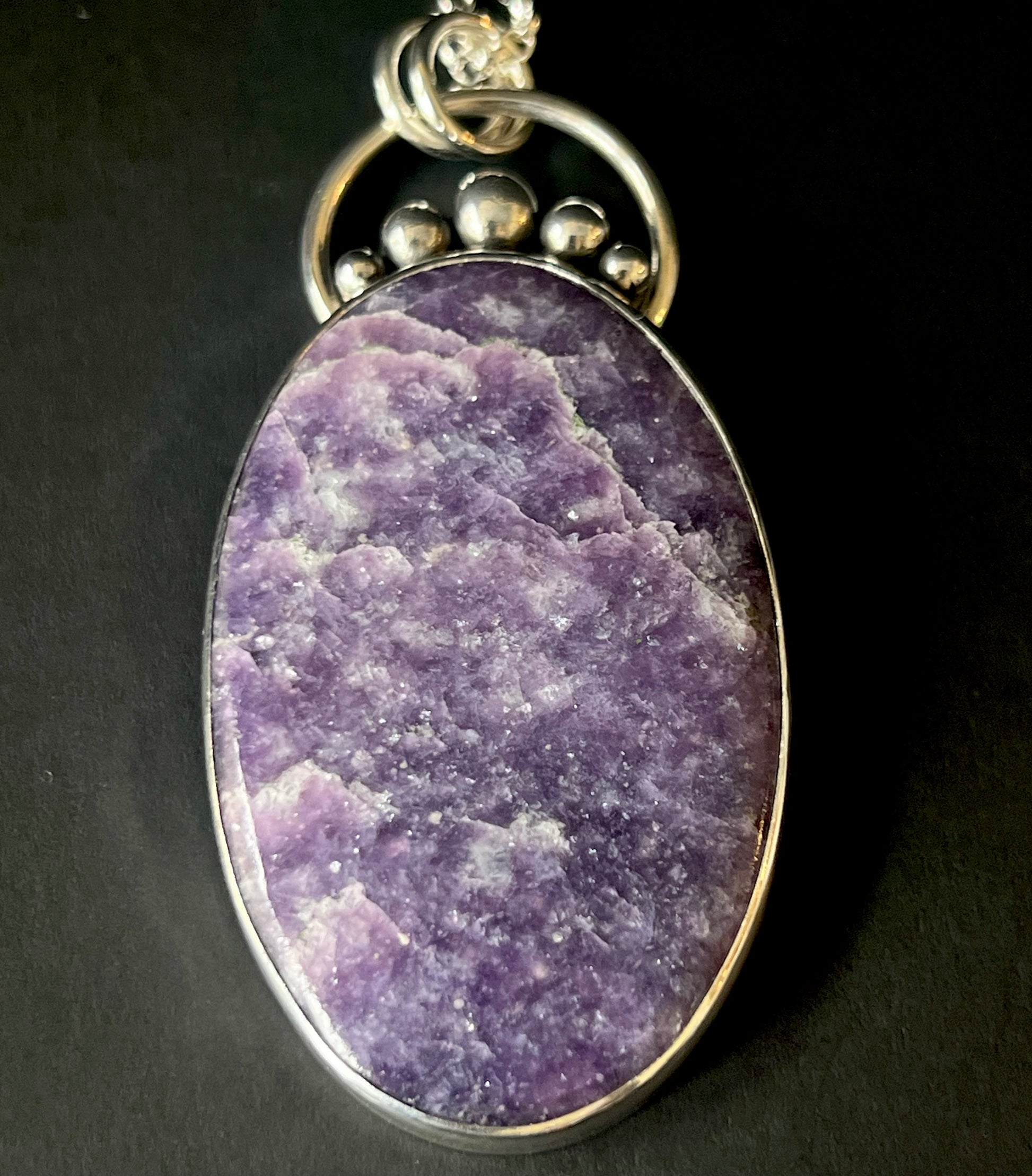 Large Oval Lepidolite Sterling Silver Necklace