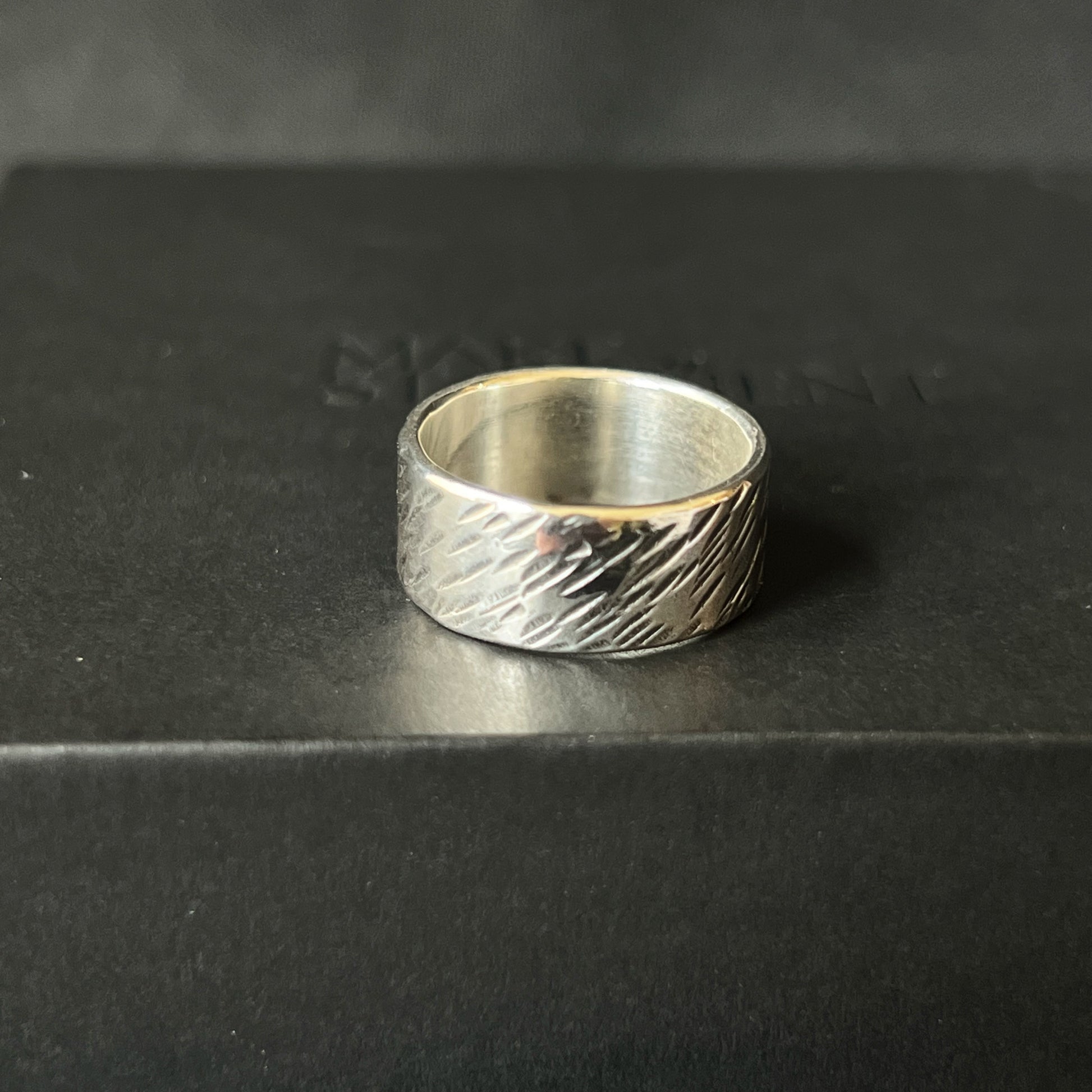 Handmade sterling silver unisex ring. This ring has texture that has been oxidised to bring out the pattern.