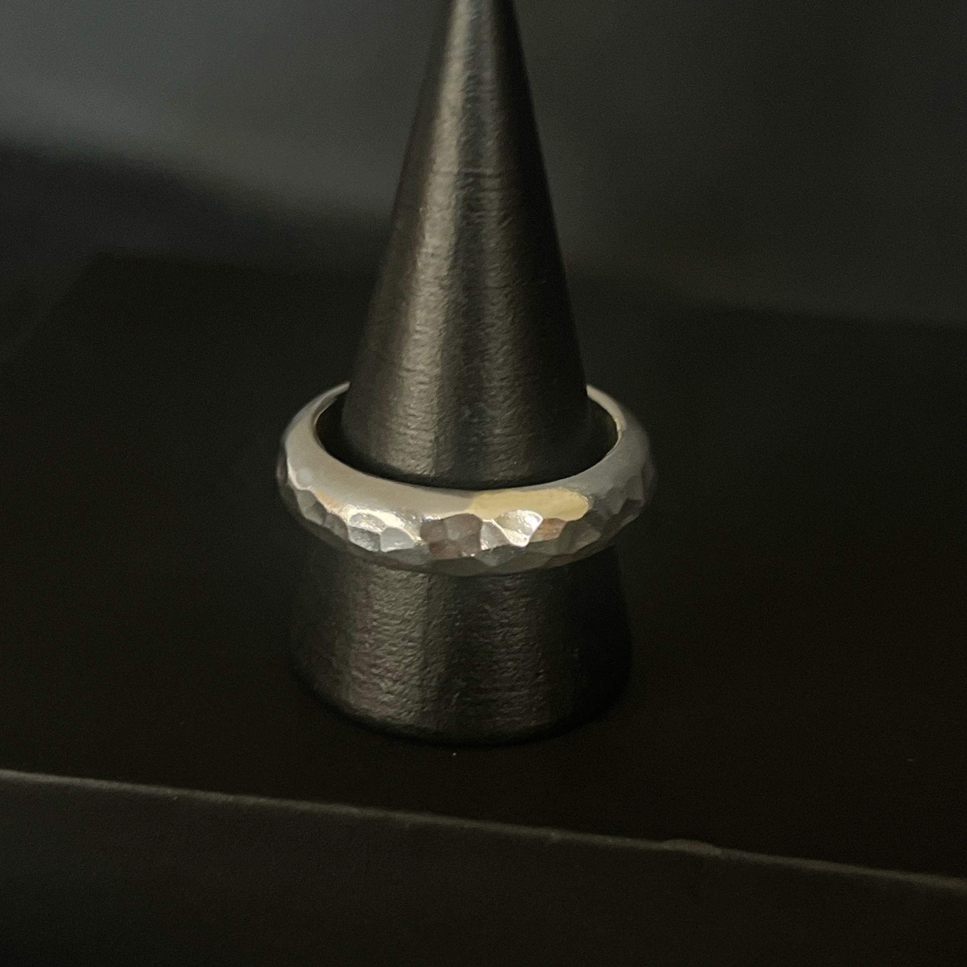 Handmade sterling silver unisex ring. This chunky ring has a hammered texture.