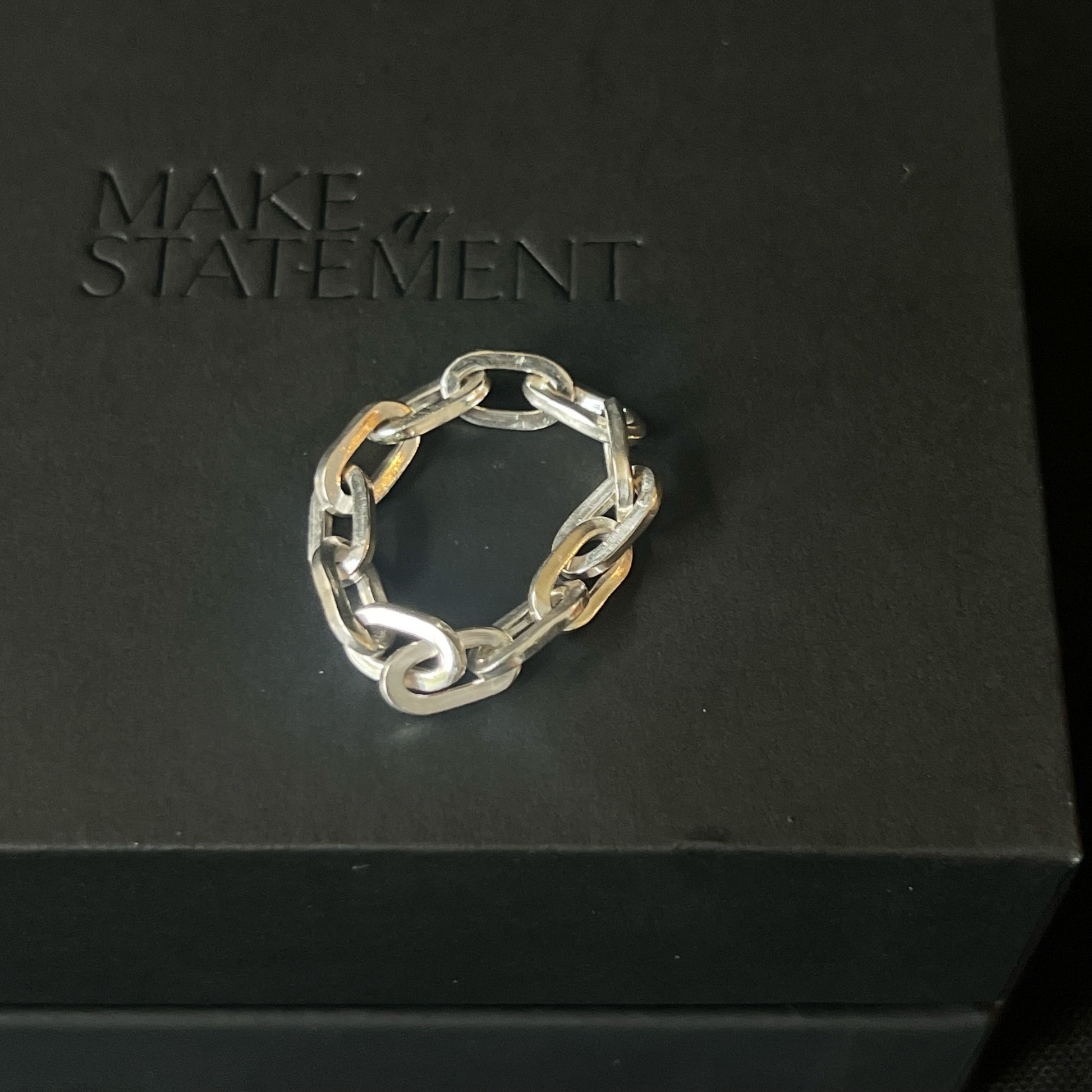 This handmade ring is made up of sterling chain links. Very comfortable and would look great matched with my other paperclip chain jewellery.