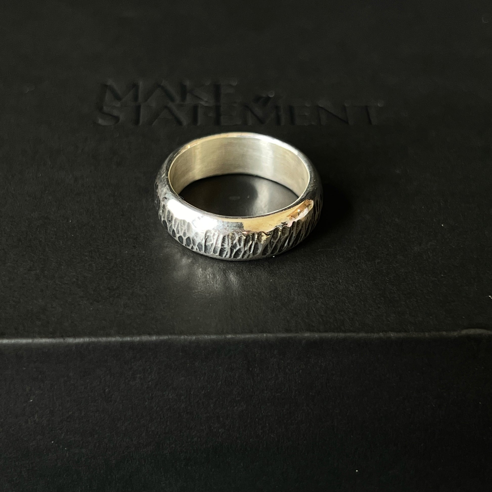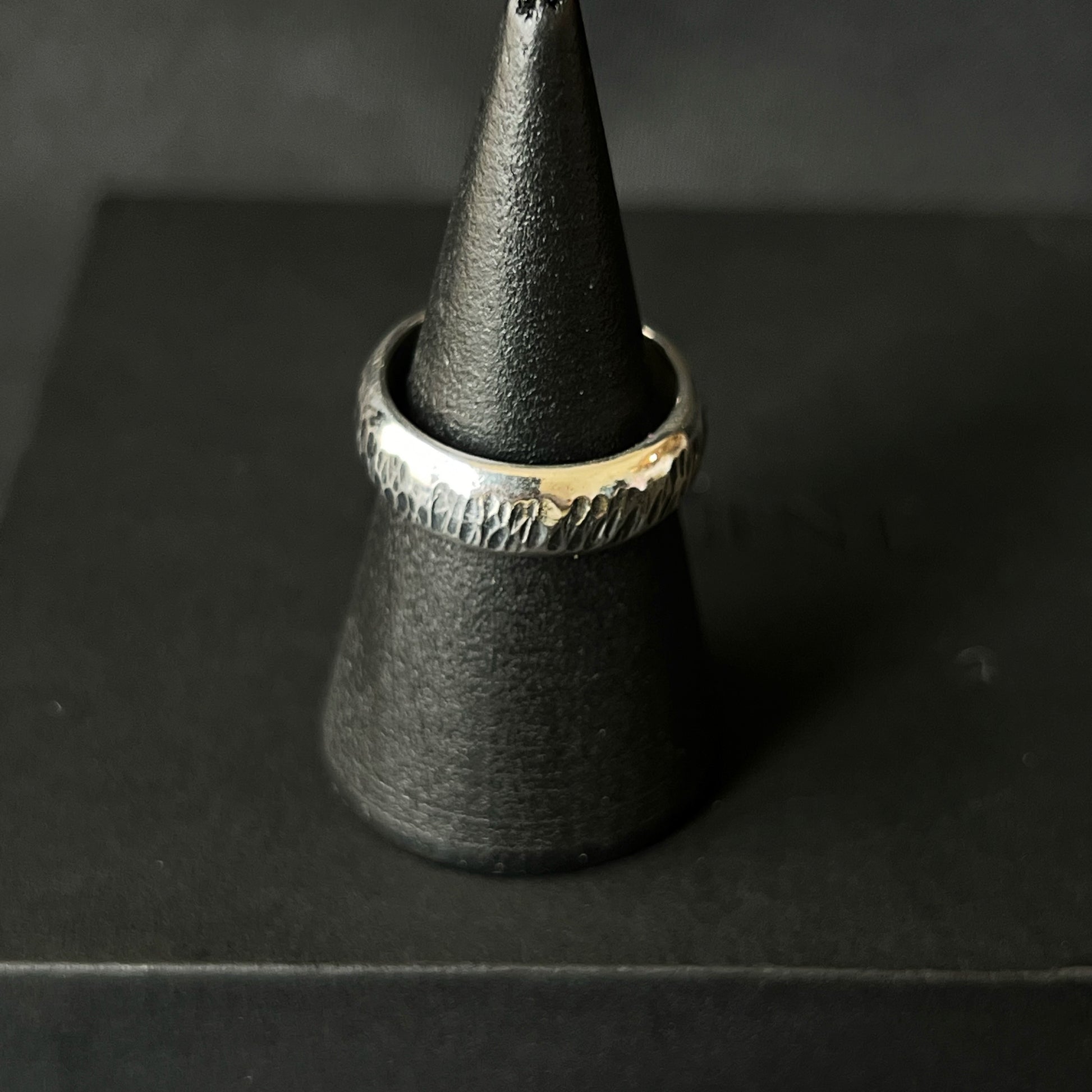 Handmade sterling silver unisex ring. This ring has texture that has been oxidised to bring out the pattern.