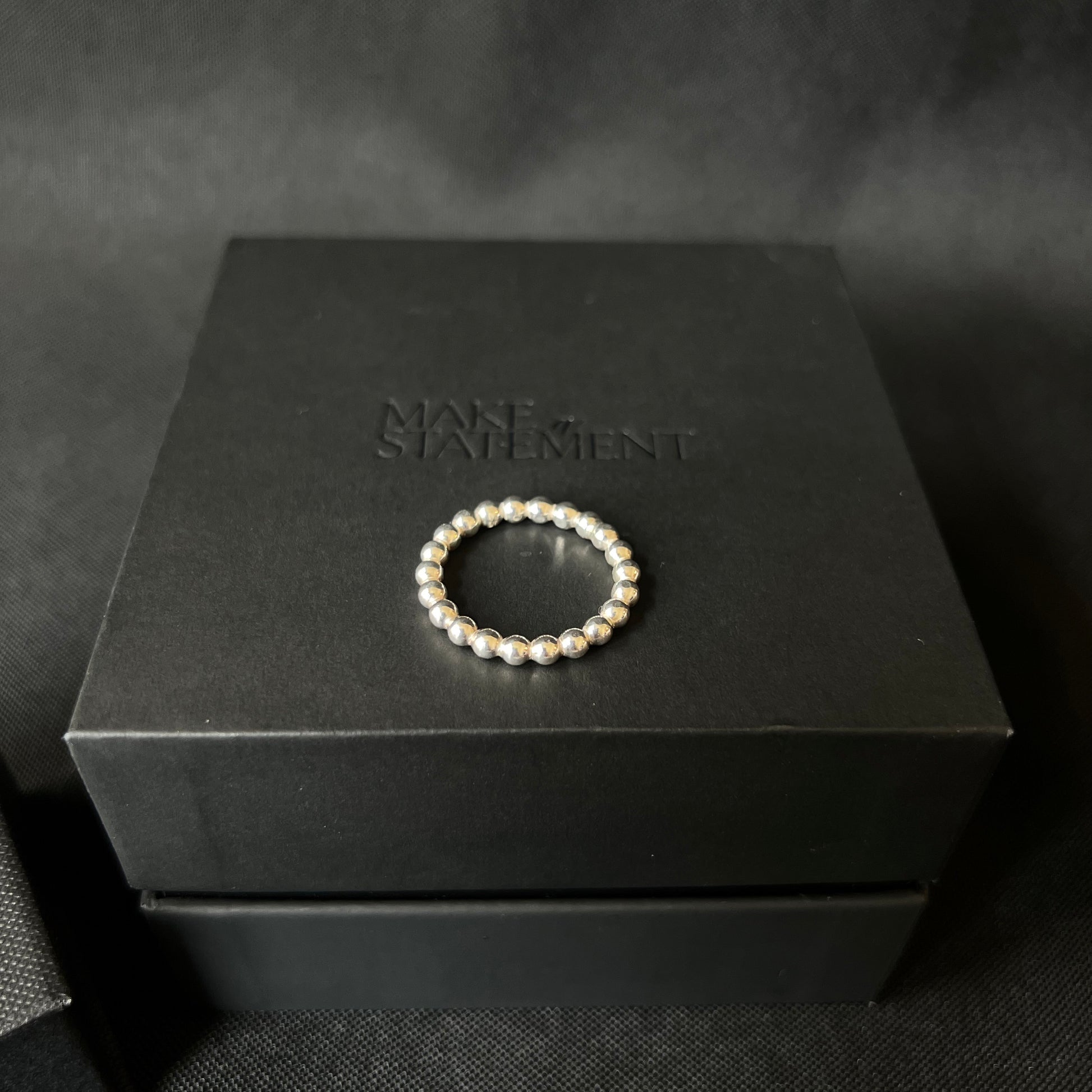 This handmade ring is made with beaded sterling silver.