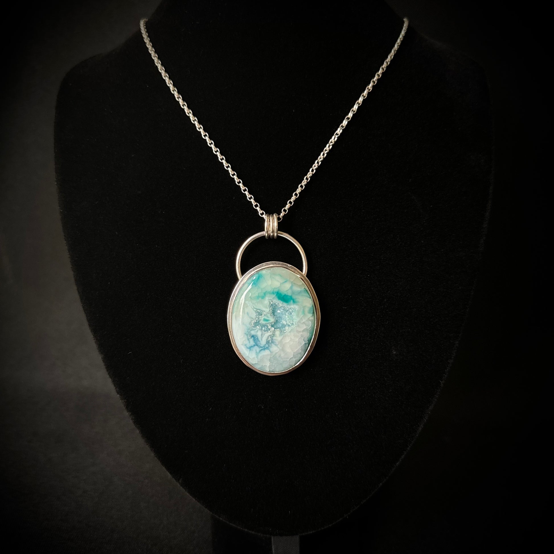 Dragon Vein Agate Druzy Sterling Silver Necklace