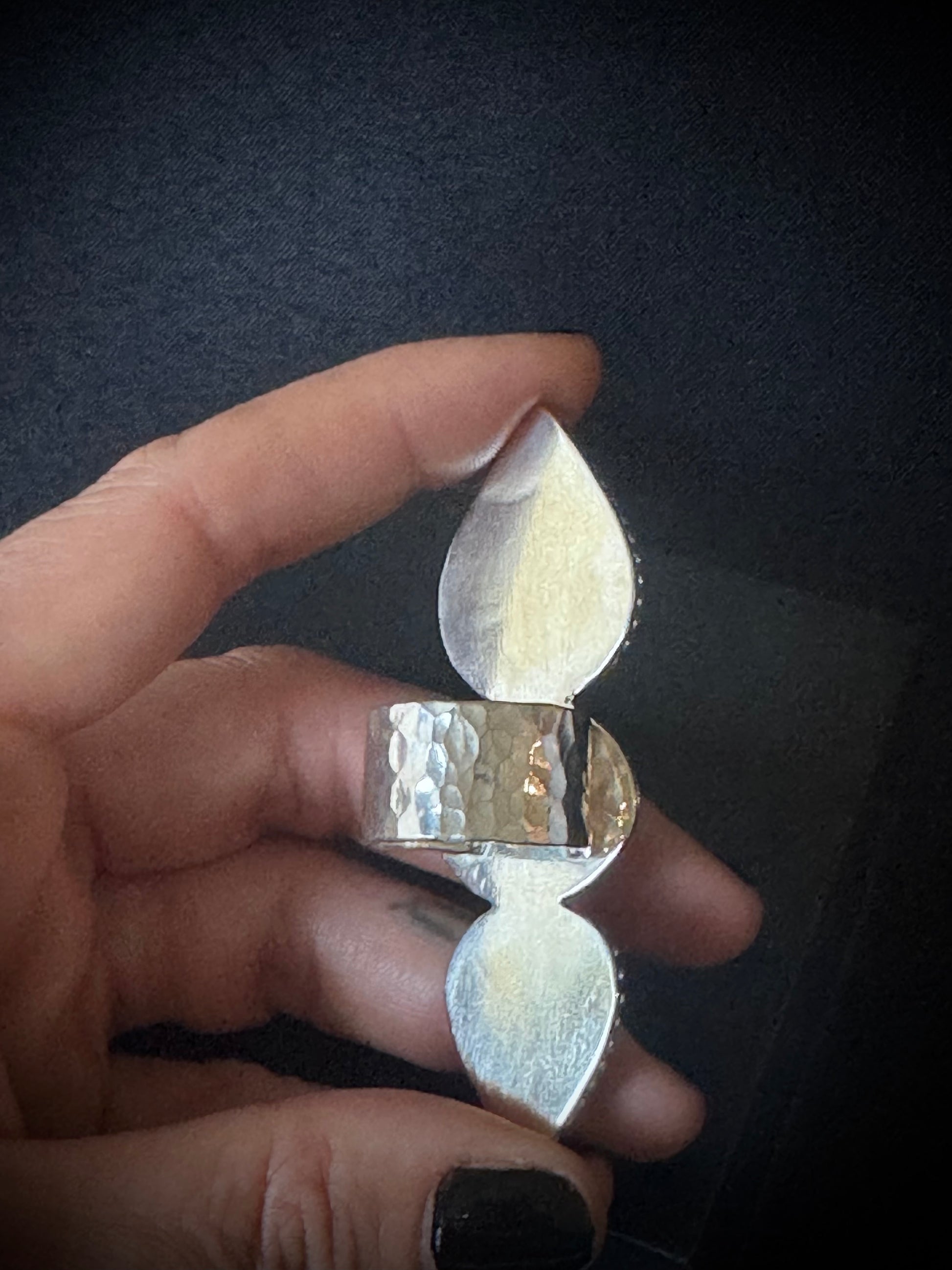 - Hammered ring band approximately 7.6cm long and 2.3cm wide