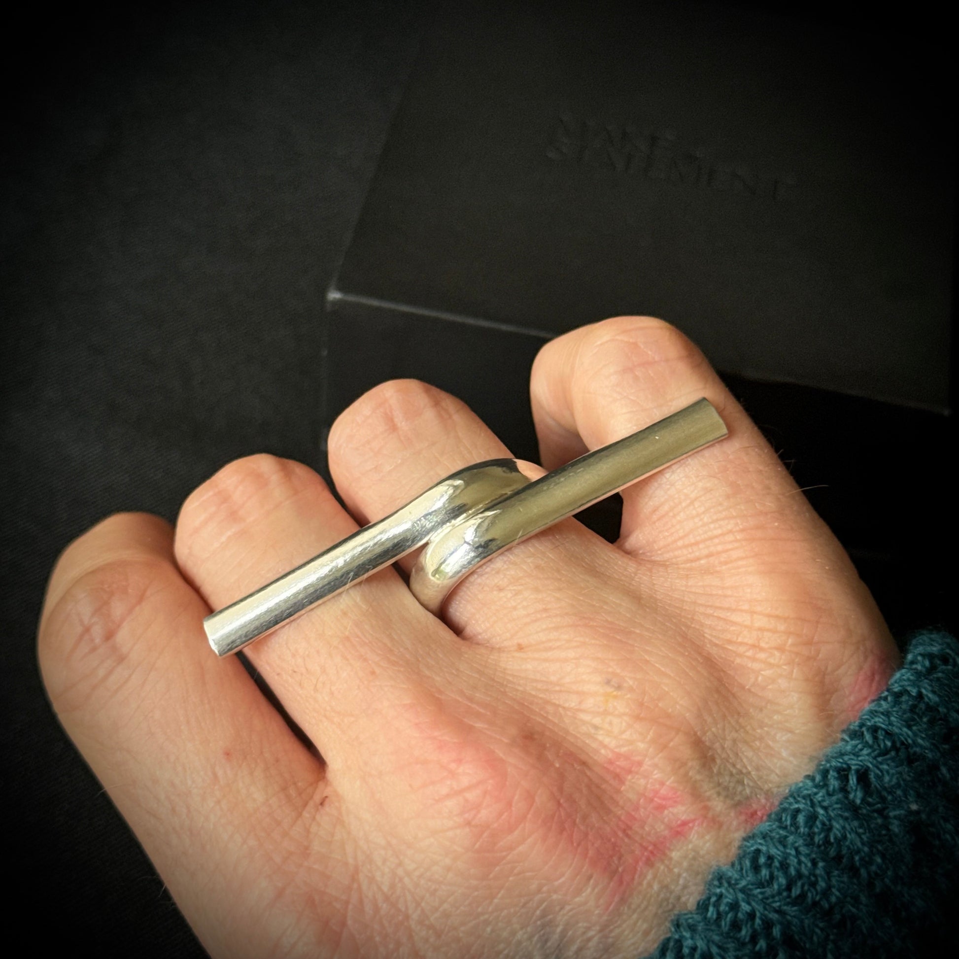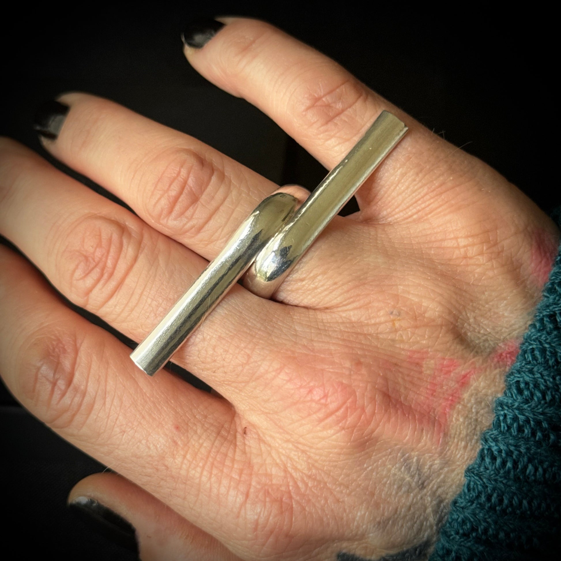 This unusual handmade statement ring is made from sterling silver.