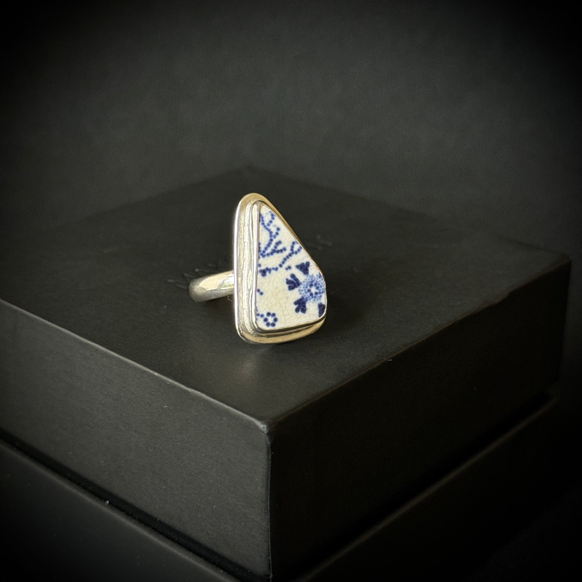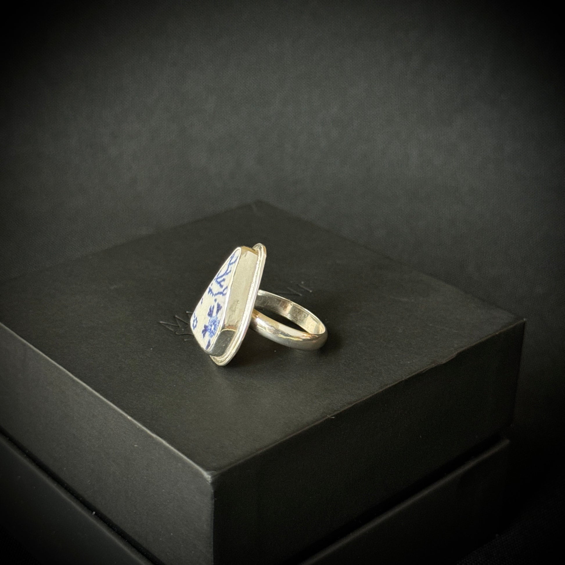 Mexican Sea Pottery Sterling Silver Ring - Size S