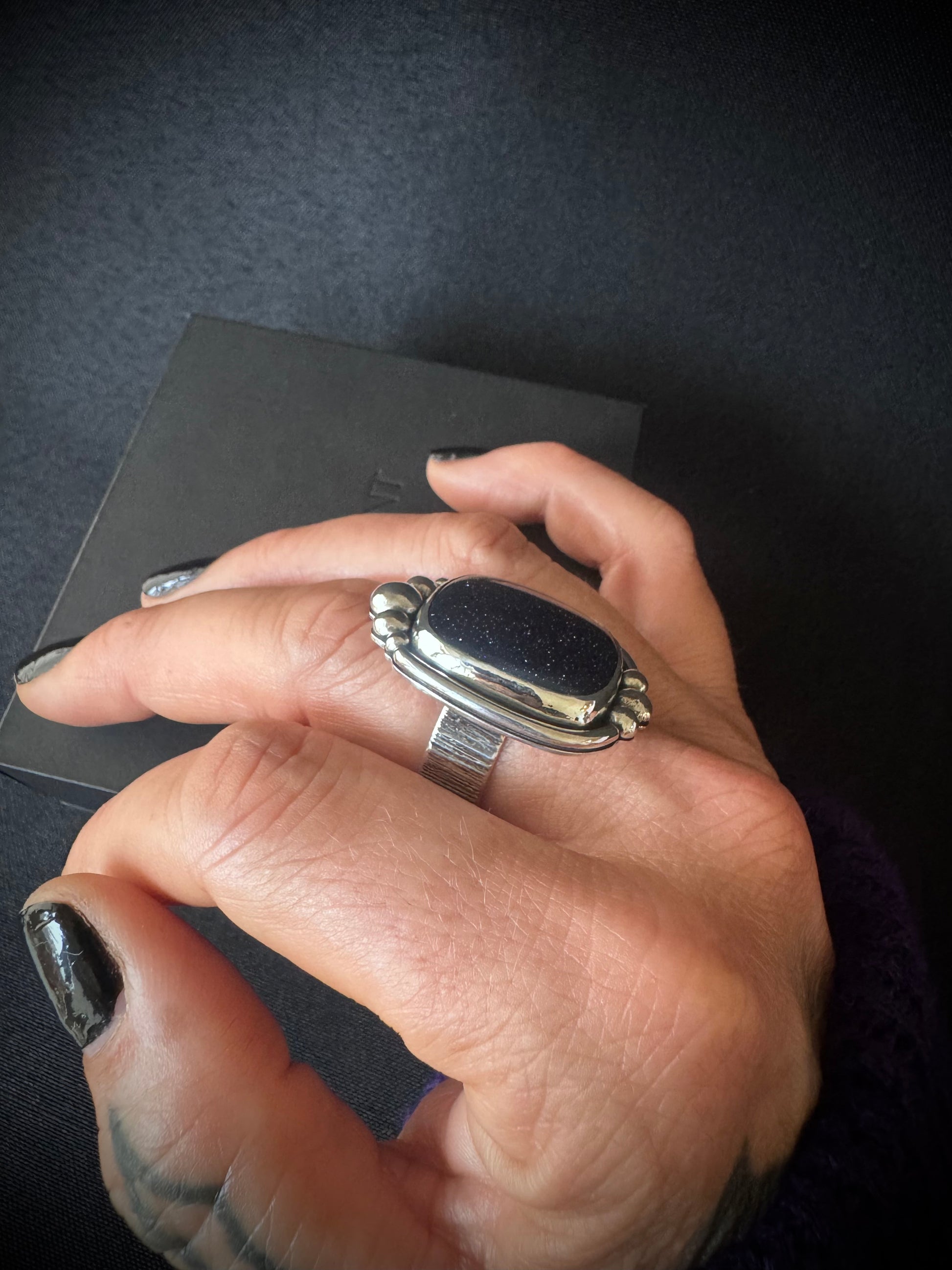 Square Blue Sunstone Sterling Silver Ring - Size V