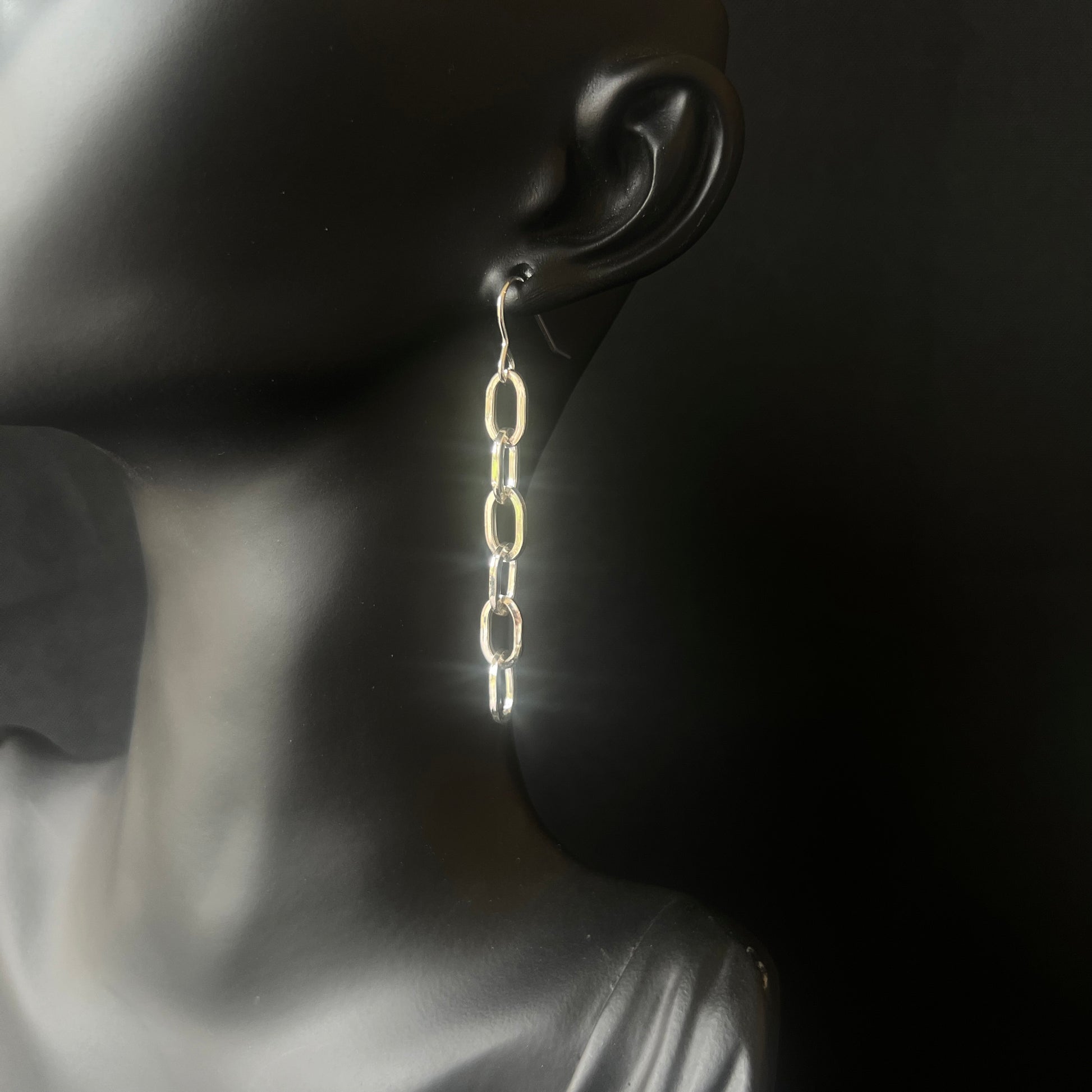 These handmade drop earrings have 6 paperclip chain links and are made with sterling silver.